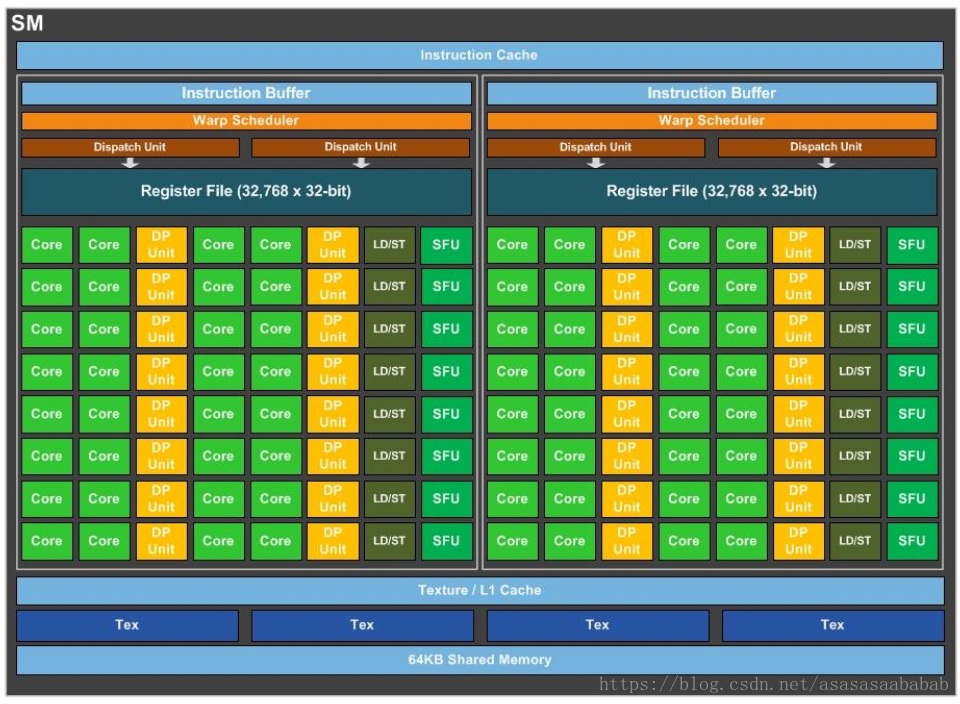 SM是GPU中最基本的计算单元,负责线程调度与数据处理,由多个计算核心CUDAcore和调度单元组成。