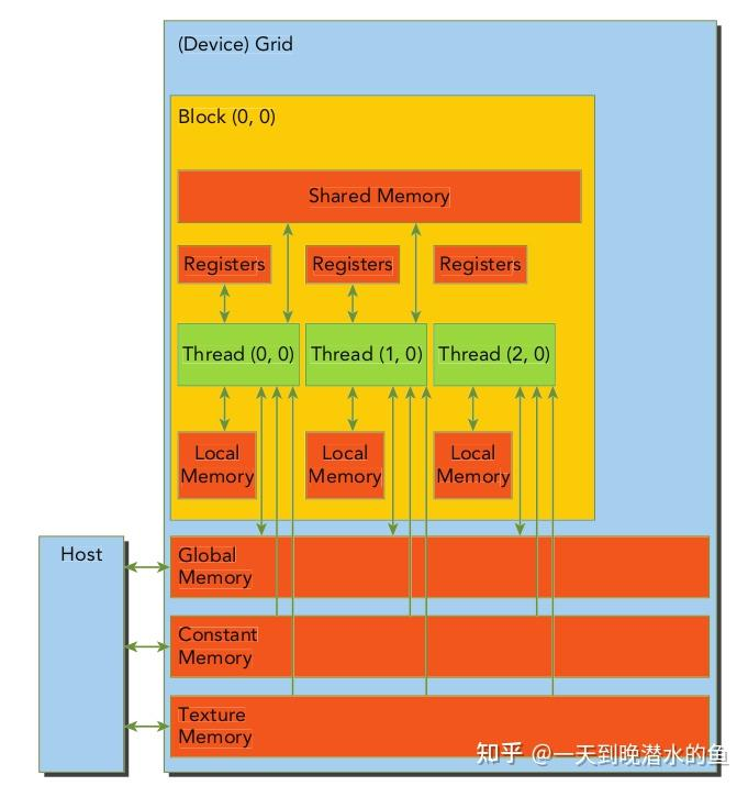如果线程的寄存器需求超过了SM限制,则会溢出到局部内存,局部内存是GPU全局内存的一部分。